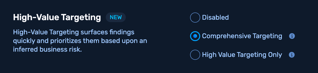 - Step 2: Choose whether to enable high-value targeting, and if so, what level of targeting.- Disabled: Choose this option if you do not want to target high-value identities or assets for testing. If disabled, normal test will be run where all hosts and users are targeted in random order without context.