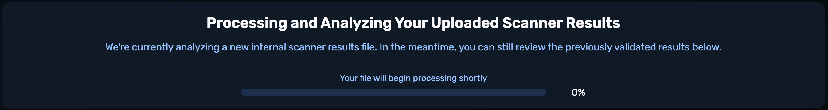| PENDING | The scanner file is awaiting to be uploaded or has been uploaded but risk intelligence has not started. |