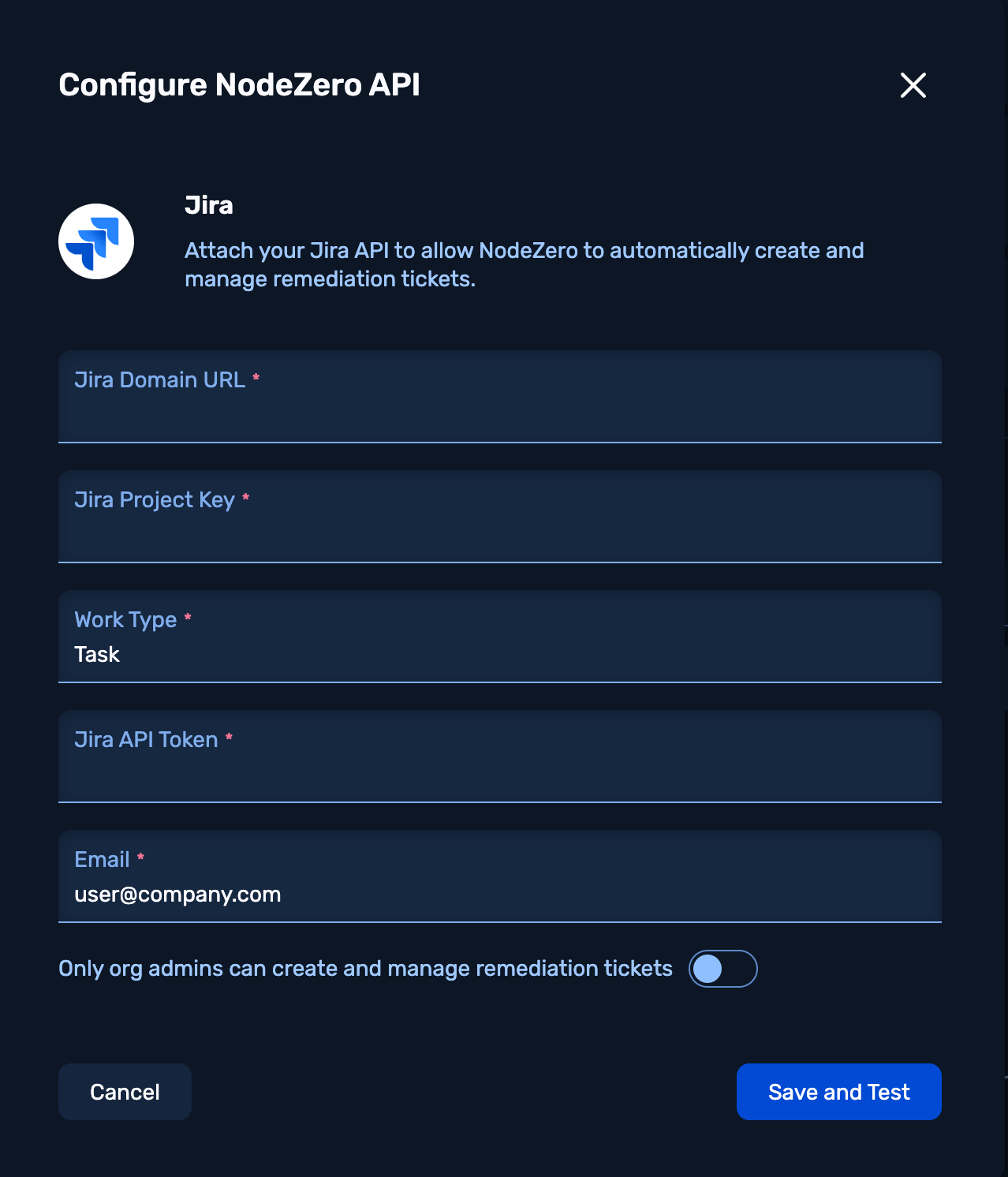 Only org admins can create and manage remediation tickets | Select whether only org admins can dispatch tickets or if all users within the org can. |